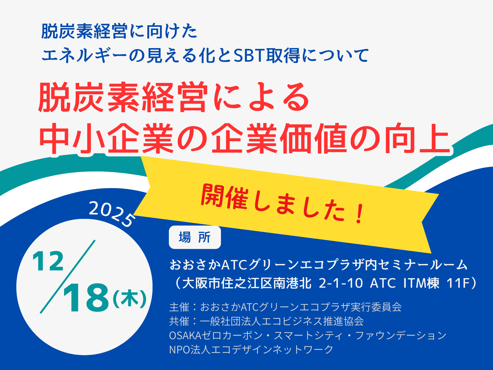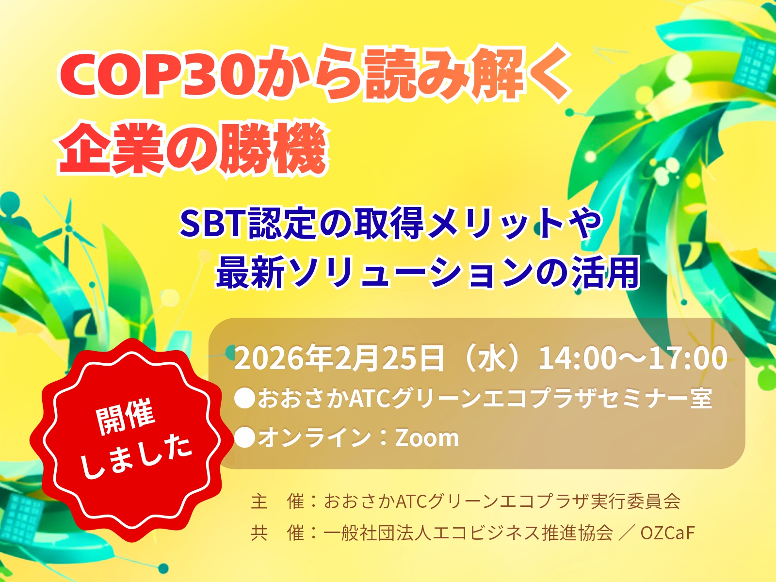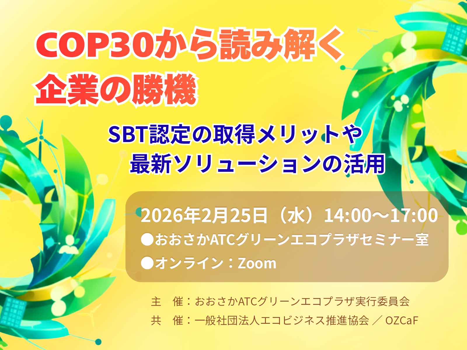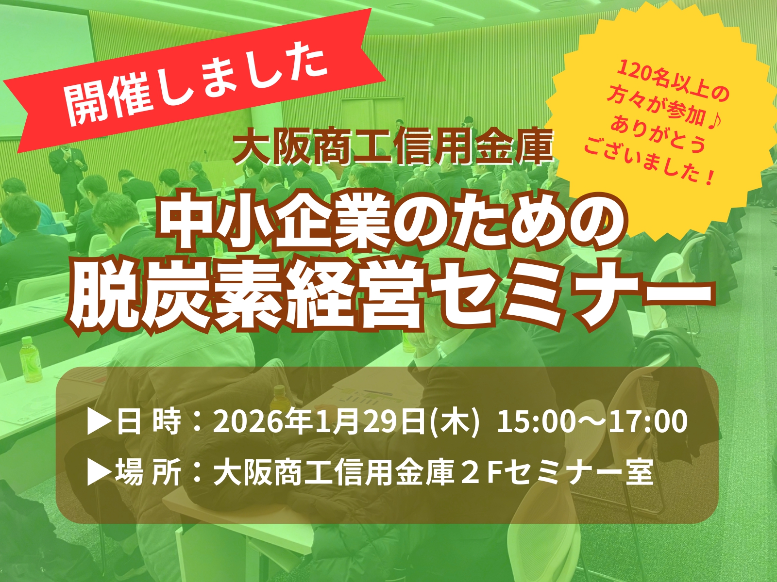 2025年11月25日(火)、富田林商工会主催で「脱炭素経営セミナー」を開催します。脱炭素への挑戦は...