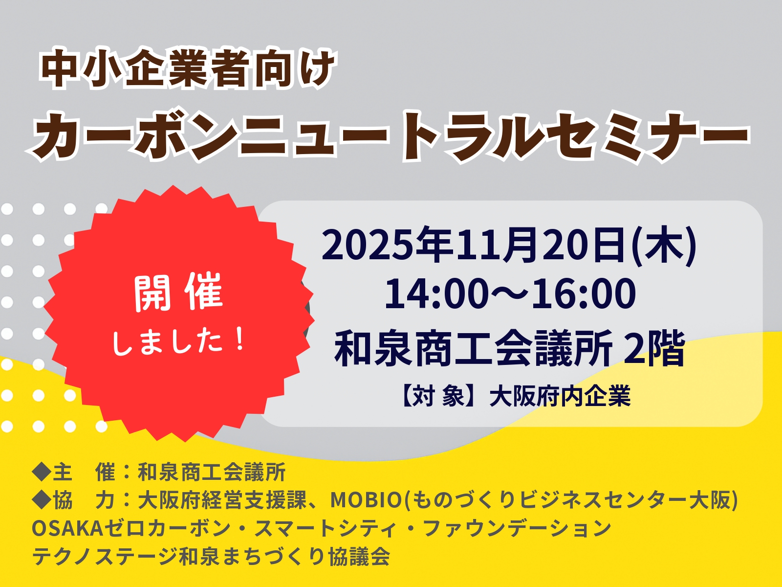 2025年11月20日(木)、和泉商工会議所主催で「カーボンニュートラルセミナー」を開催しました。