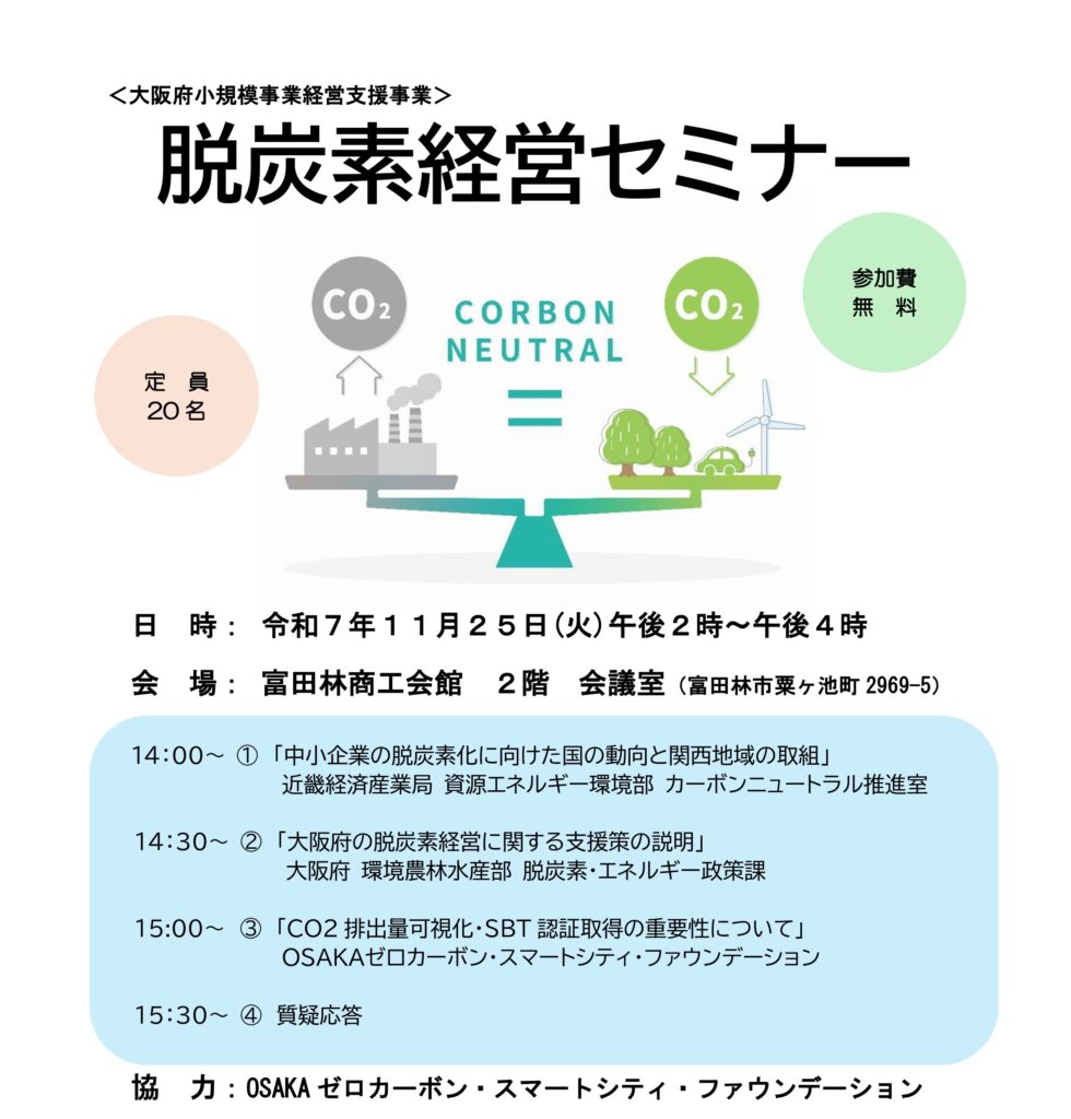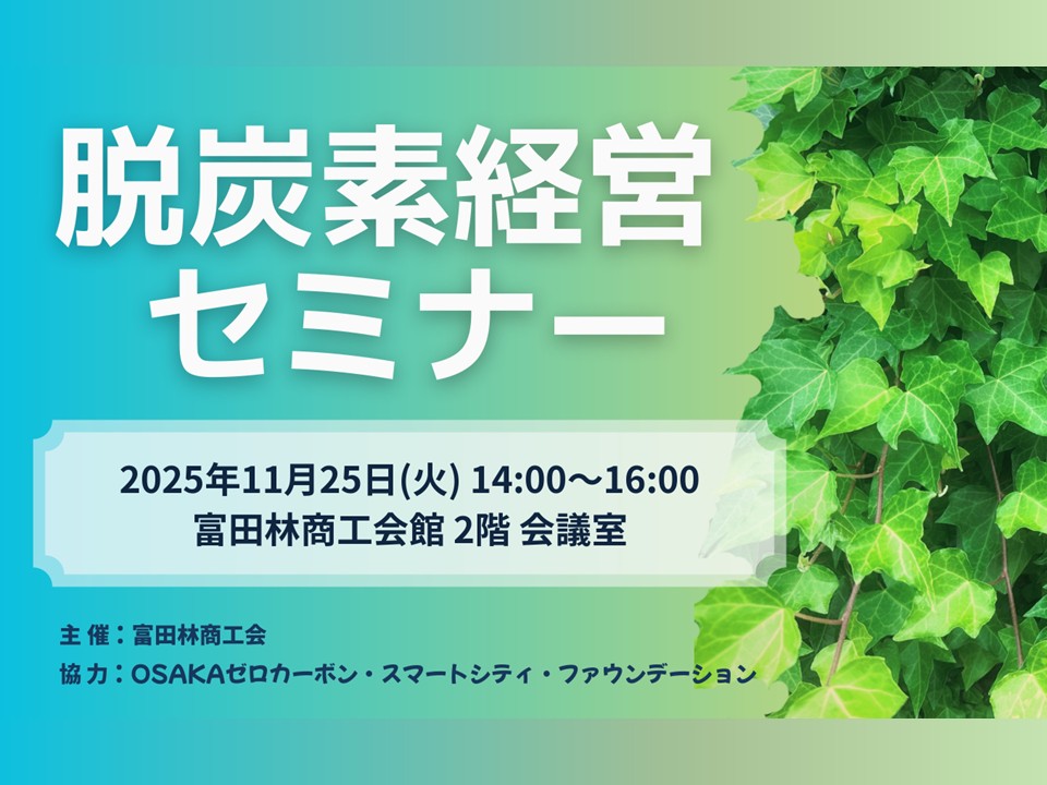 2025年11月25日(火)、富田林商工会主催で「脱炭素経営セミナー」を開催します。