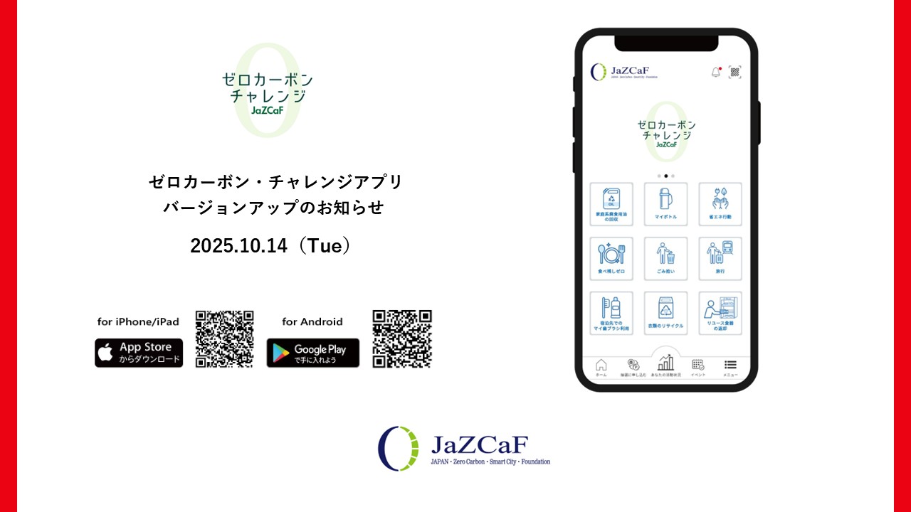 そしてこの度、2025年10月13日の大阪・関西万博閉幕にあわせて、翌14日より「万博レガシーアプリ 『ゼロカーボン・チャレンジアプリ』 」としてリニューアルいたします。