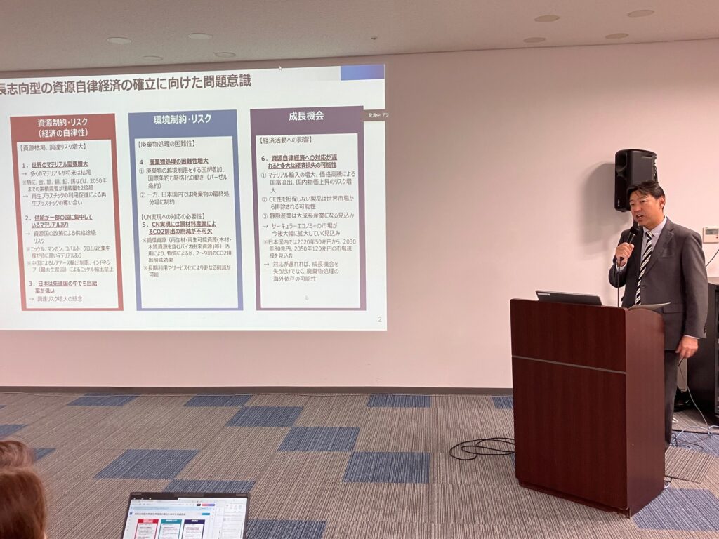 今回は「経済産業省のサーキュラーエコノミー施策について」近畿経済産業局 環境・資源循環経済課 山本課長からご説明頂きました。