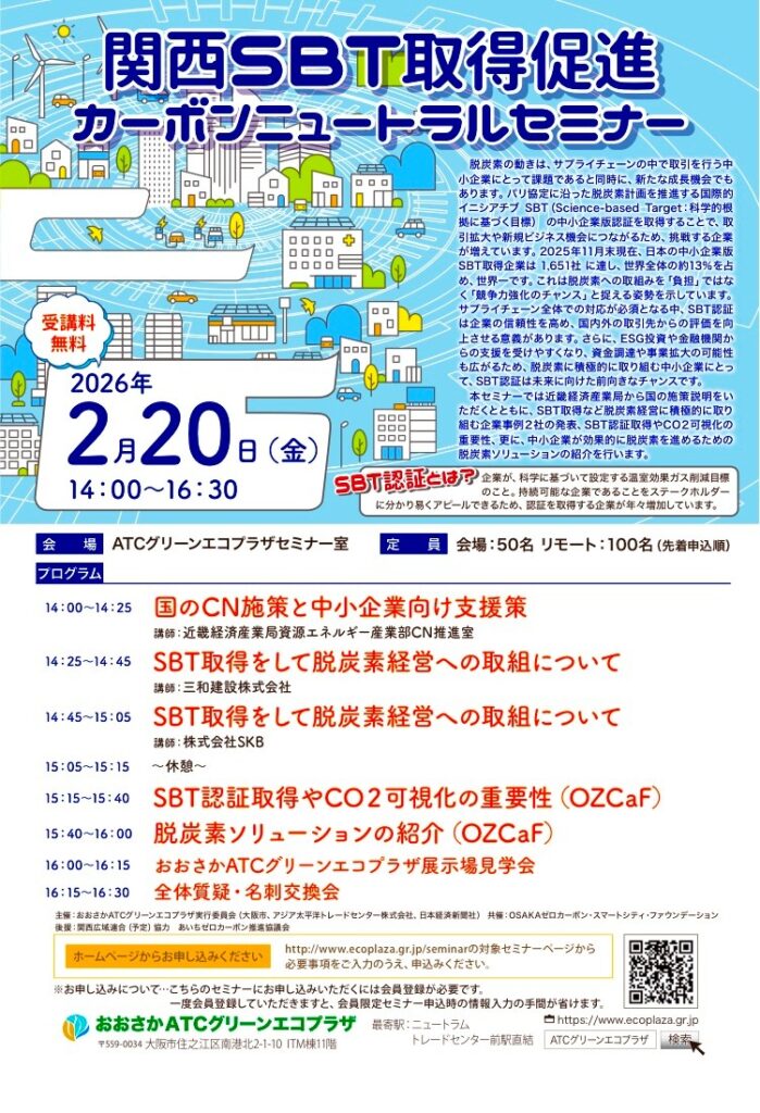 2月20日(金)「関西SBT認定取得促進カーボンニュートラルセミナー」を開催します。