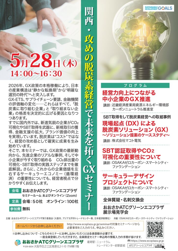 5月28日(木) 関西・攻めの脱炭素経営で未来を拓くGXセミナーを開催します
